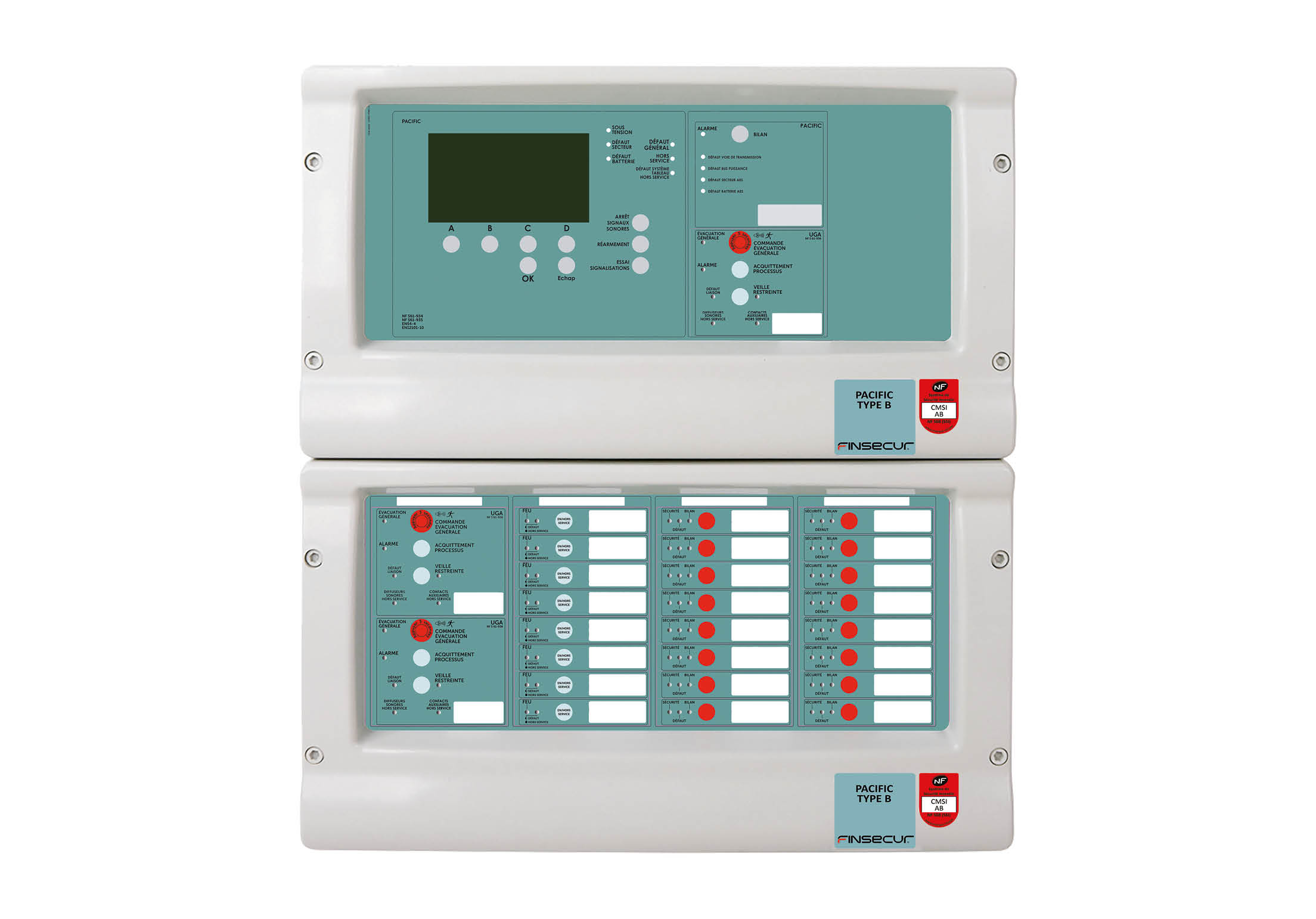 - Modules d’entrée/sortie : liaison avec désenfumage, extinction automatique, ventilation ou autres équipements.
